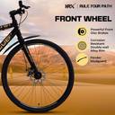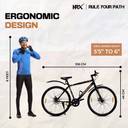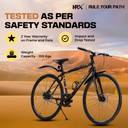 The HRX Rogue is precisely engineered to beat rush hour traffic and let you explore greater heights, evoking the rugged and robust wilderness. The HRX Rogue stands out because of its athletic chassis, twin disc brakes, and anti-skid pedal. The Rogue Hybrid bicycle has a matte appearance and is ideal for everyday use. You can manage the bike regardless of the terrain thanks to the strong front disc brakes. It has an adjustable PU foam saddle for a smooth and pleasant ride.