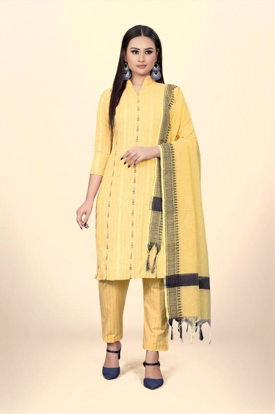 Top - cottoN SLUB (KHADI ) WITH WIWING WORK ( 2 .2mtr) Bottom - cotton ( 2 mtr) Dupta - cotton WIVING WORK ( 2.20)