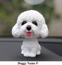HSR Car Ornaments Bobblehead Dog Nodding Puppy Toys Car Dashboard Decor Toy Lovely Wobble Shaking Head Dolls (Doggy Name F) (White)