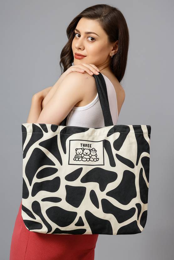 Upgrade your fashion game with this Teddy Print Black & White Tote Bag for Women.