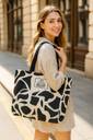 Upgrade your everyday look with this stylish Tote Bag for Women. Designed with a trendy black & white abstract print and a cute cartoon patch, this bag is perfect for college, office, shopping, or travel. Made from premium quality canvas material, it is lightweight yet durable. The spacious design allows you to carry all your essentials like laptop, books, wallet, makeup, and more. Its strong shoulder straps ensure comfort while carrying, making it a perfect mix of fashion + functionality.