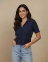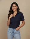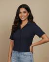 Casual Regular Sleeves Solid Women Blue Top