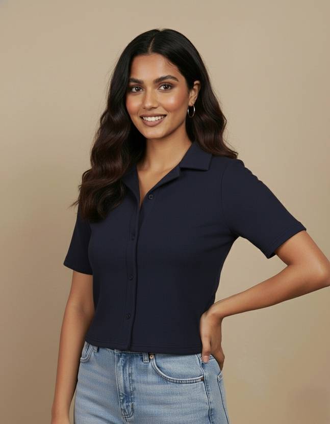 HUBLIFESTYLE Casual Solid Women Blue Top