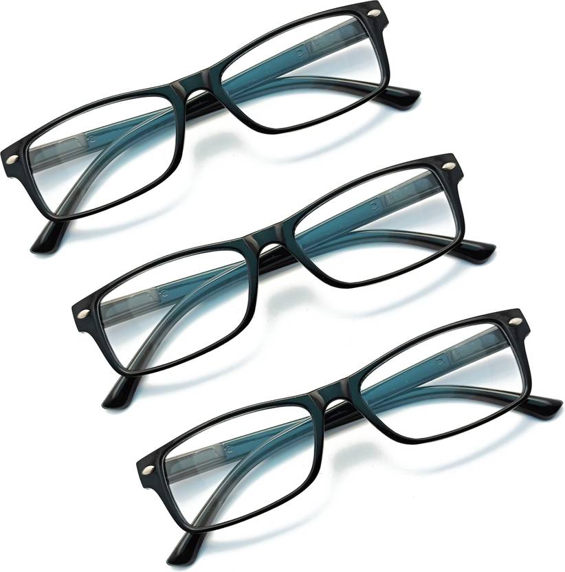 Experience comfortable and clear vision with this Pack of 3 Black Rectangle Reading Glasses, designed for men and women who need dependable eyewear for everyday use. The lightweight plastic frame provides a stable and comfortable fit, while the anti-glare clear lenses help reduce strain during reading, office work, mobile use, and computer screens.