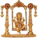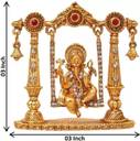 HUBZONES Gold Plated with Stone God Shri Ganesh Car Dashboard Statue Decorative Showpiece - 7 cm (Brass, Gold)