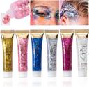 HUDAMOJI 6 Color Body Glitter Gel Mermaid Face Chunky Glitter Sequins for Eye Lip Hair 18 g (Nail Sparkling Holographic Shimmer Laser Glitter Makeup for Singer Concerts)
