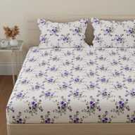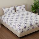 Huesland Cotton Double Flat 144 TC Floral Bedsheet (Pack of 1, White and Purple)