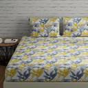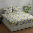 Huesland Cotton Double Flat 144 TC Striped Bedsheet (Pack of 1, Flamingo - Yellow)
