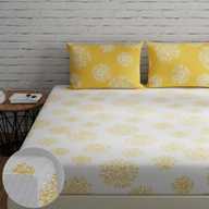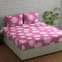 Huesland Cotton King Fitted (Elastic) 144 TC Geometric Bedsheet (Pack of 1, Mauve)