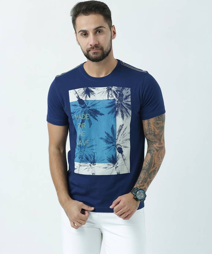 HUETRAP Graphic Print Men Round Neck Navy Blue T-Shirt