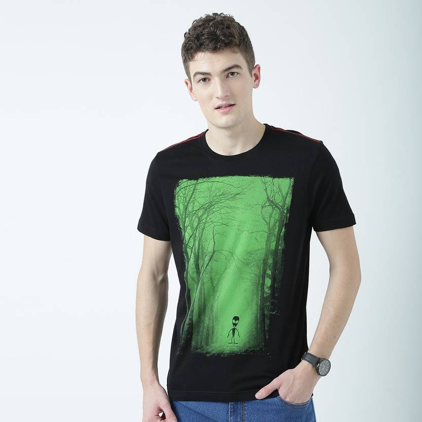 HUETRAP Printed Men Round Neck Black T-Shirt
