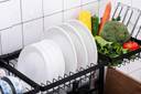The over the sink dish drying rack include fruit & vegetable basket, dish rack, bowl rack, detergent rack, Utensils Holder, cutting board rack and 7 Utility Hooks All the racks of the over the sink dish drying rack are Interchangeable based on your preference Space-saving countertop organizer. Stainless Steel & Anti-slip Specifications.