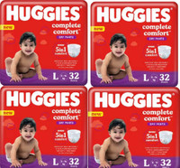 Huggies Complete Comfort Dry Pants Large Baby Diaper Pants with 5 in 1 Comfort - L (128 Pieces)