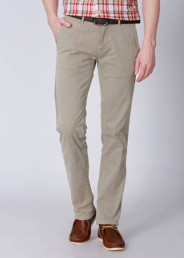 Men Slim Fit Beige Cotton Blend Trousers