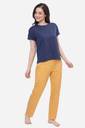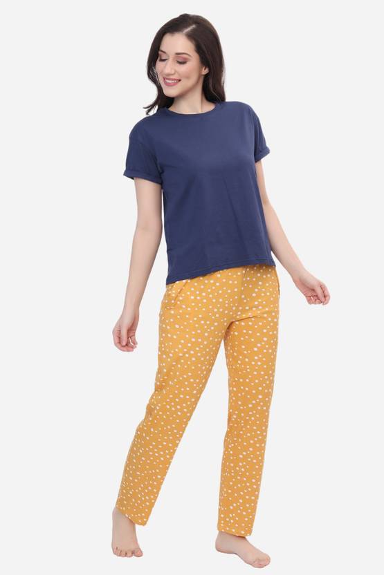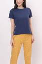 HUIS & LOISIR Women Top & Pyjama Set Dark Blue, Yellow Printed