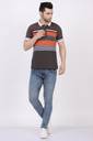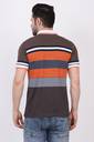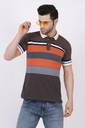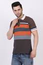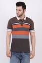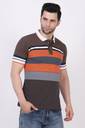 Men Striped Polo Neck Polyester Brown T-Shirt
