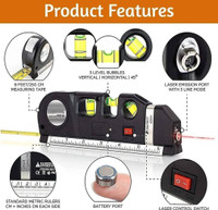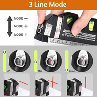 Hukimoyo Laser Leveler Tool Multipurpose Level Laser Measuring Tape with Ruler, 3 Mode Laser with Bubbles Vertical Horizontal Multifunction Leveler Tool Non-magnetic Line Level (18.5 cm)