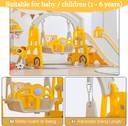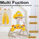 [ SWING AND SLIDE FOR KIDS ]This cute and bright 5-in-1 playing set offers 5 functions: smooth slide, safe swing, basketball hoop football and hockey goal point, which is intended for indoor and outdoor use. It can develop kids' hand-eye coordination ability and balance ability, and is the perfect gift for kids.