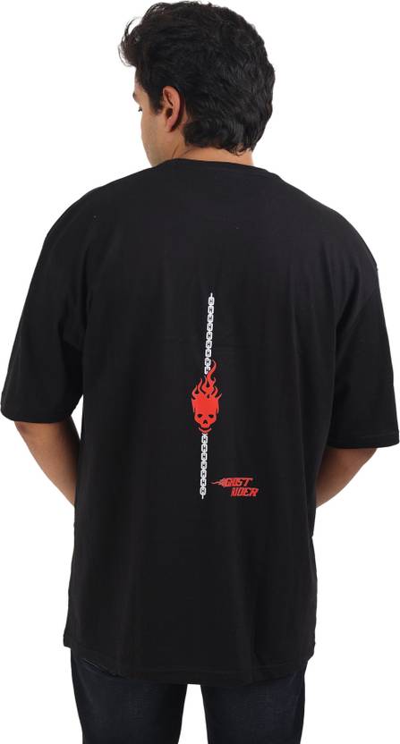 Hulm Men Printed Round Neck Organic Cotton Black T-Shirt