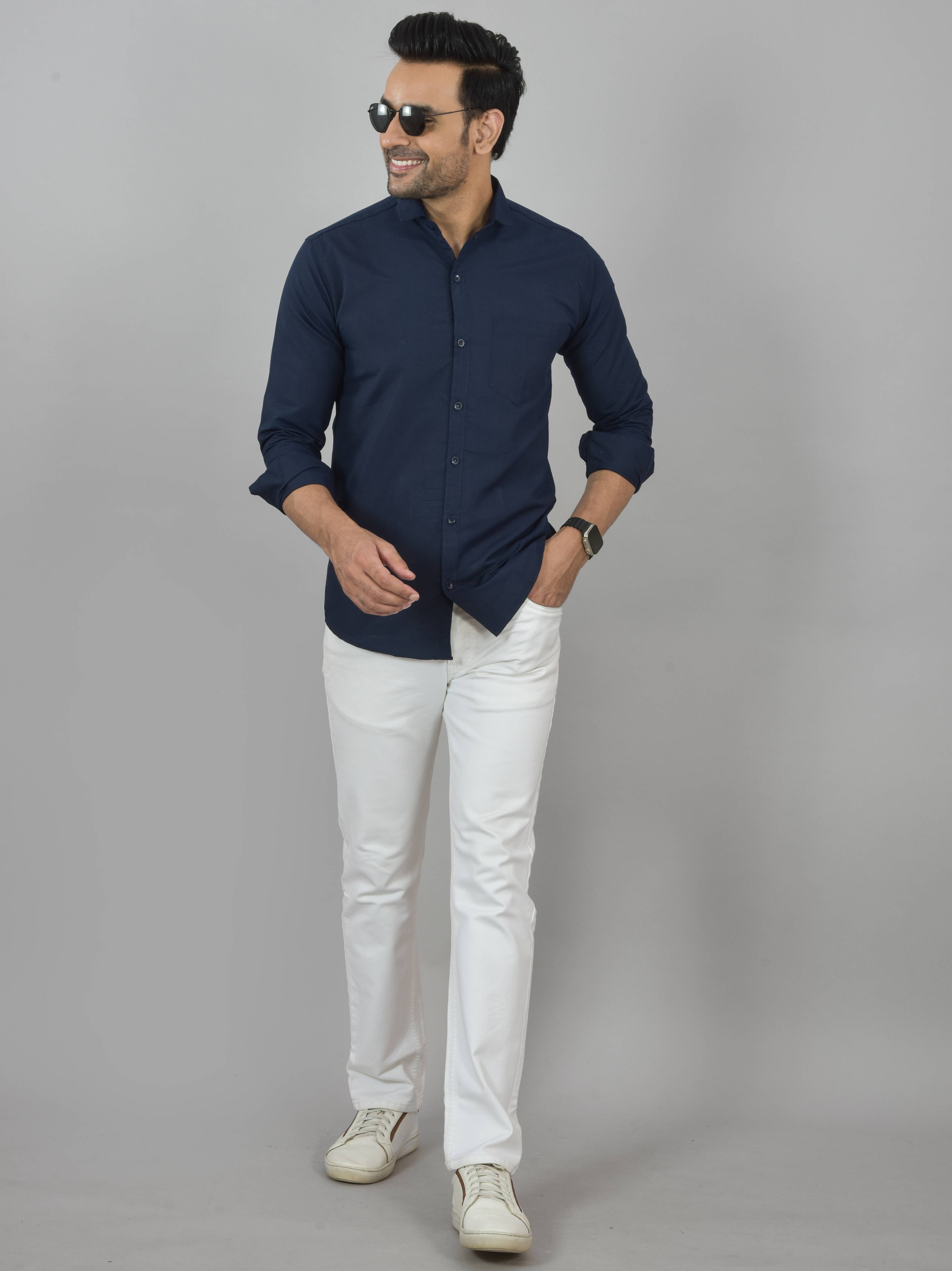 Elevate your style with this sophisticated men's shirt that exudes timeless elegance. Crafted from premium cotton fabric, it offers a soft and breathable feel against the skin, ensuring utmost comfort throughout the day. The classic navy hue lends a versatile touch, seamlessly transitioning from professional settings to casual outings. With its tailored fit and button-down collar, this shirt strikes the perfect balance between refined and relaxed. The long sleeves can be rolled up for a more casual look or kept down for a polished appearance. Whether paired with chinos for the office or jeans for a night out, this versatile shirt is a wardrobe essential that effortlessly elevates any ensemble. Embrace refined style with this must-have addition to your collection. Please refer to the size chart for accurate measurements before making your purchase.