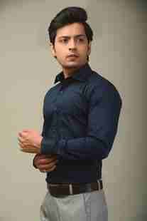 English Navy Men Slim Fit Solid Spread Collar Formal Shirt