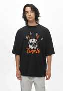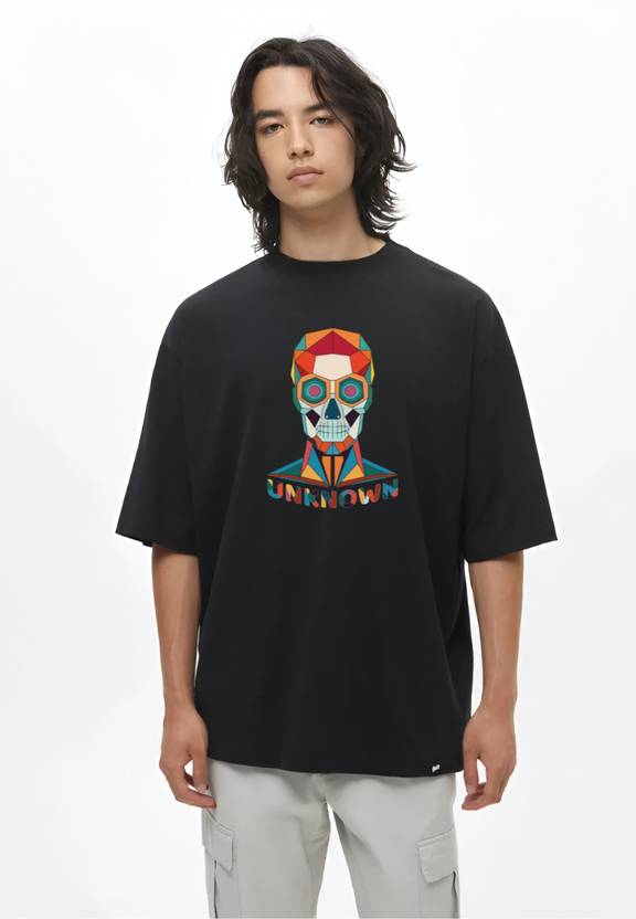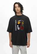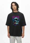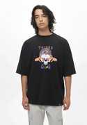 Men Printed Round Neck Cotton Blend Black T-Shirt