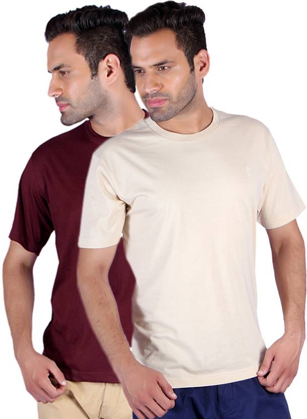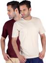 Cotton Blend Fabric,R-neck Beige, Maroon T-shirt Combo ,Single Jersey Fabric,Logo Embroidery on chest,Casual wear,Comfort Fit