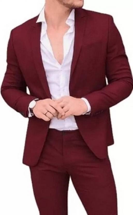HUMJOLI MENS WEAR Solid Single Breasted Casual, Formal, Festive & Wedding Men Blazer (Maroon)