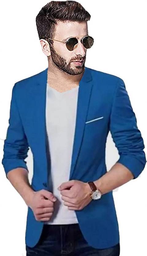 Men Solid Single Breasted Casual, Formal, Festive & Wedding Blazer (Blue)