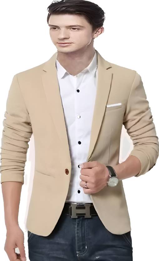 HUMJOLI MENS WEAR Men Solid Single Breasted Casual, Formal, Party, Festive & Wedding Blazer (Beige)