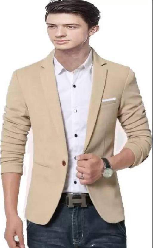 HUMJOLI MENS WEAR Solid Single Breasted Casual Men Blazer (Beige)