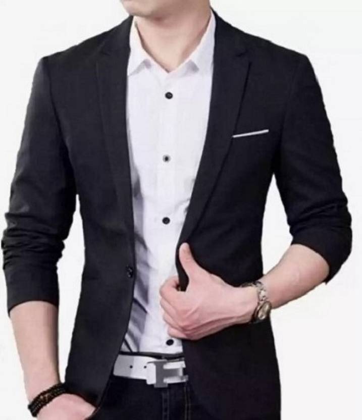 HUMJOLI MENS WEAR Solid Single Breasted Casual Men Blazer (Black)