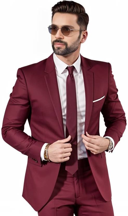 Men Solid Single Breasted Formal, Casual, Festive, Wedding Blazer (Maroon)
