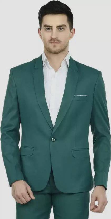 HUMJOLI Solid Single Breasted Festive & Wedding Men Blazer (Green)