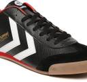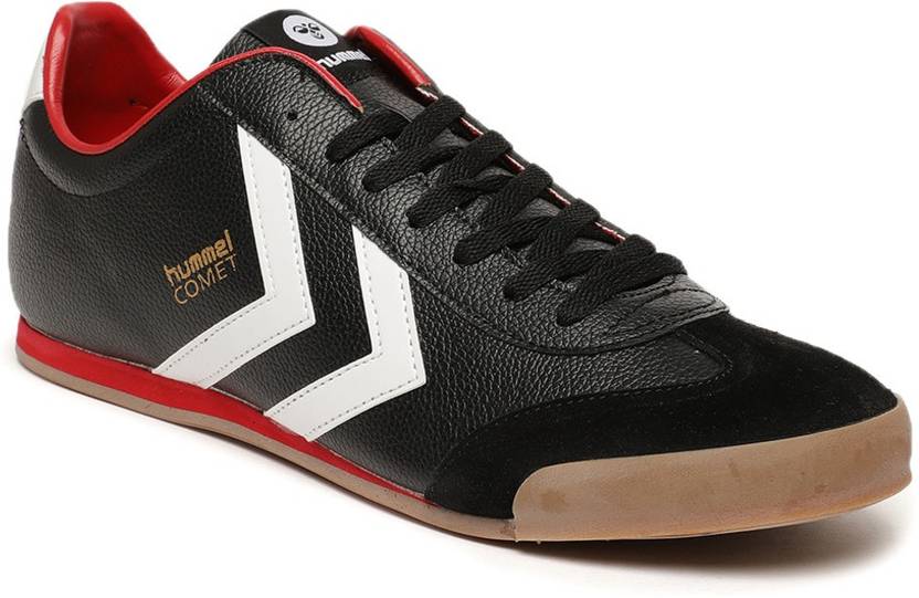 A pair of round-toe black red sneakers, has regular styling, lace-up detailSynthetic upperCushioned footbedTextured and patterned outsoleWarranty: 3 monthsWarranty provided by brand/manufacturer. Try on these hip hummel casual shoes and embrace your comfortable new kicks. Keep it casual for your date by matching this black pair with trim denims and a classic leather jacket.
