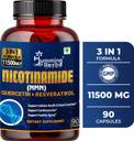 "Reignite your youthfulness with Humming Herbs' NMN Supplement, a premium 3-in-1 formula that infuses the power of 11500 mg raw powder potency into every capsule. Our blend harnesses the scientifically-backed trio of ?-Nicotinamide Mononucleotide, Quercetin, and Trans-Resveratrol, expertly formulated to support cellular health, brain function, and cardiovascular vitality. Embrace the anti-aging prowess that bolsters DNA repair, cognitive sharpness, and weight management while promoting a healthy heart and metabolic health. Elevate your daily routine with our dietary supplement, designed to deliver a concentrated surge of rejuvenation, ensuring you feel revitalized and energetic."