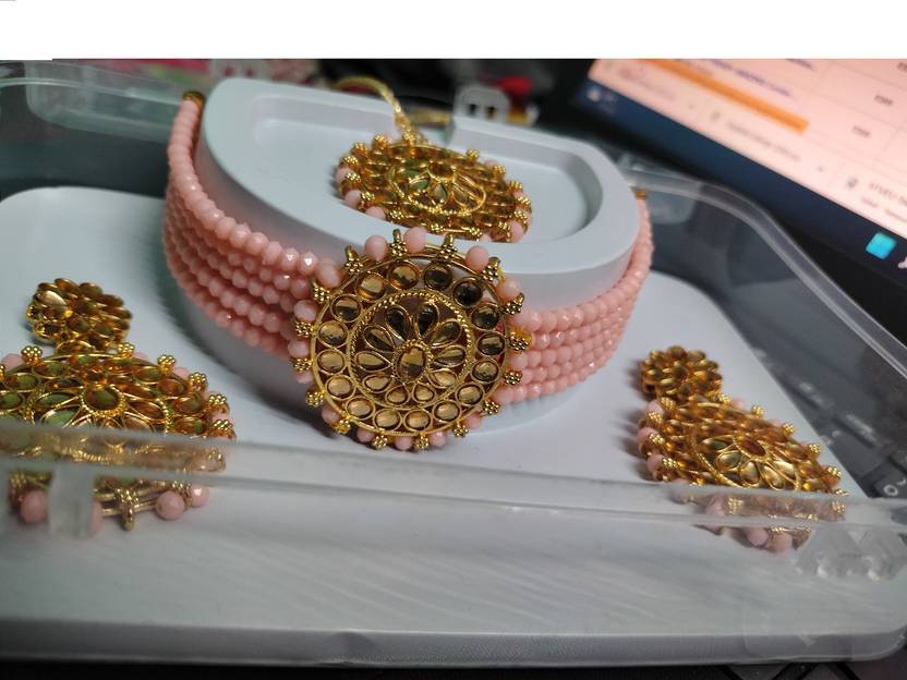 Alloy Gold-plated Pink, Gold Jewel Set (Pack of 1)