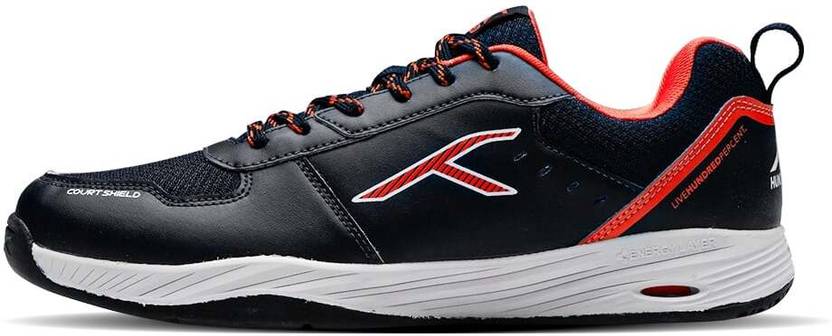 Hundred Court Shield Non-Marking Badminton Shoes For Men (Navy, Orange , 11)
