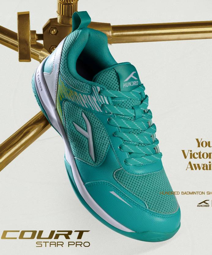 Hundred Court Star Pro Non Marking Badminton Shoes For Men (Green , 11)