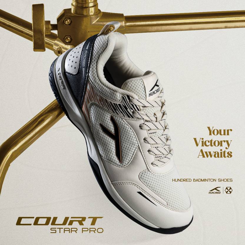 Hundred Court Star Pro Non Marking Badminton Shoes For Men (White , 8)