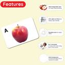 After completing 3 points, write the name of the Capital Alphabet in the front and show or stick the cards on the wall for a week. This will enable the child to associate the word with the image thus building early reading skills for babies, toddlers and young children. These set of cards will be treasure for your child even after some months when they will be able to read the description by their own.