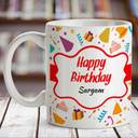 HUPPME Happy Birthday Sargam Ceramic Name White Coffee - 330 ml Ceramic Coffee Mug (330 ml)