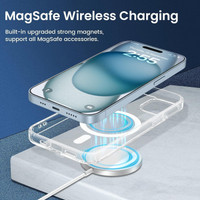 This phone back cover features built-in MagSafe technology with 38 powerful magnets designed to align accurately with MagSafe chargers and other magnetically compatible accessories. The strong magnetic adsorption ensures a secure connection with a holding force of 1,500 grams, allowing for faster and more reliable wireless charging. It supports both MagSafe chargers and third-party Qi-certified wireless chargers, maintaining optimal performance without signal interference.