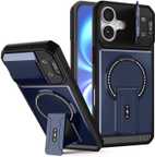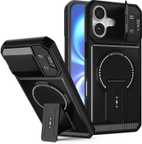 Military-grade drop protection, Sliding lens cover for camera safety, Magnetic ring support for wireless charging, Built-in kickstand for hands-free use