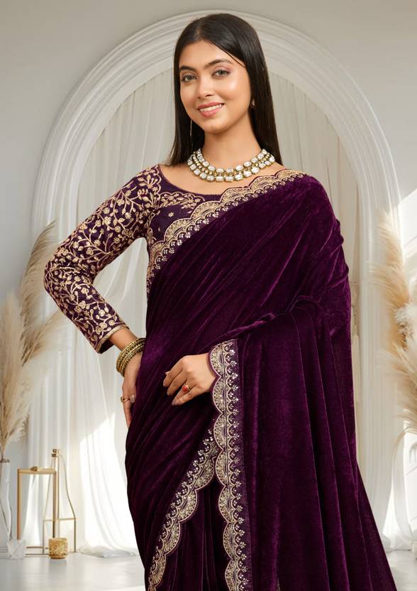 hutah Velvet Solid, Embroidered Blouse Material