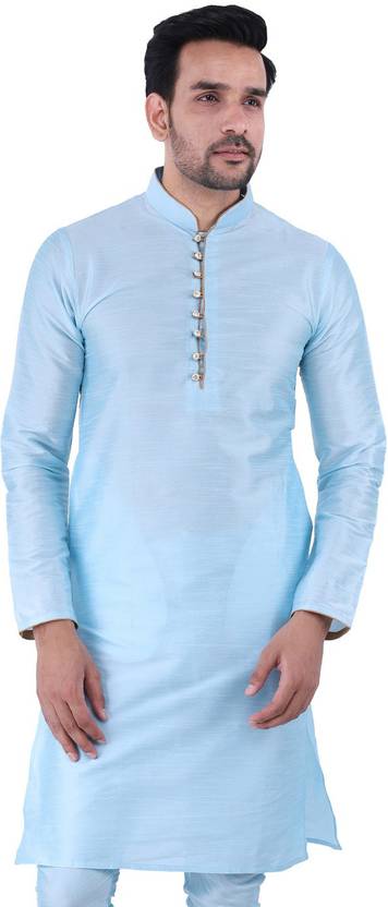 HUZUR Men Solid Dupion Silk Straight Kurta (Multicolor)