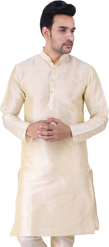 HUZUR Men Solid Dupion Silk Straight Kurta  (Yellow)