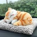 HYATT CREATION decorly Sleeping Cat Soft Toys with Sound for Car Dashboard Cat & Office Desk Decorative Showpiece - 18 cm (Resin, Orange)