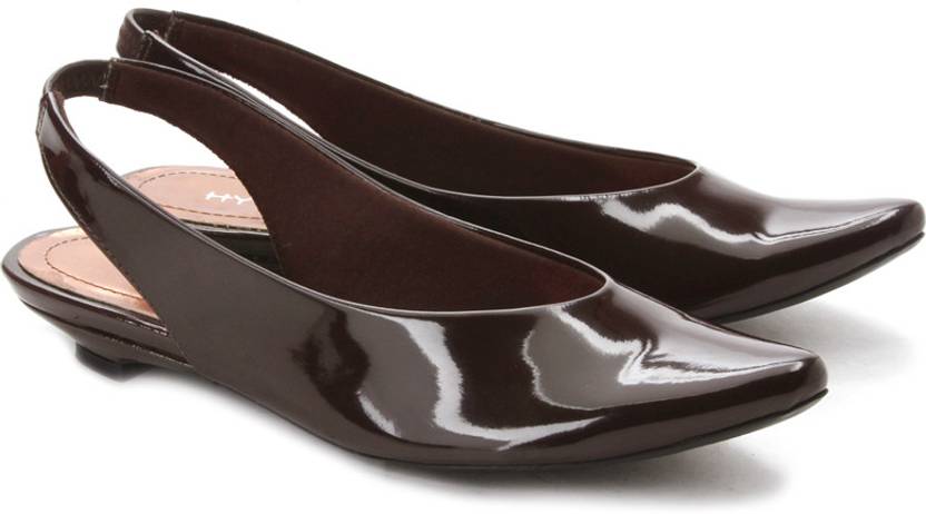 Flaunting the commanding and authoritative appearance of formal shoes while providing a comfortable feel with its 1.7 inch heel, these flats from Hype are perfect for work. With their sleek brown exterior and pointed tip shape, these flats look more corporate, while the elastic strap ensures a comfortable fit. Team them with an A-line skirt and a light pink shirt with puffed sleeves.