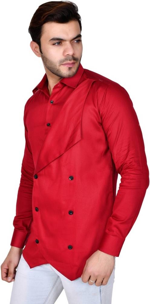 Men Solid Shawl Neck Pure Cotton Maroon T-Shirt